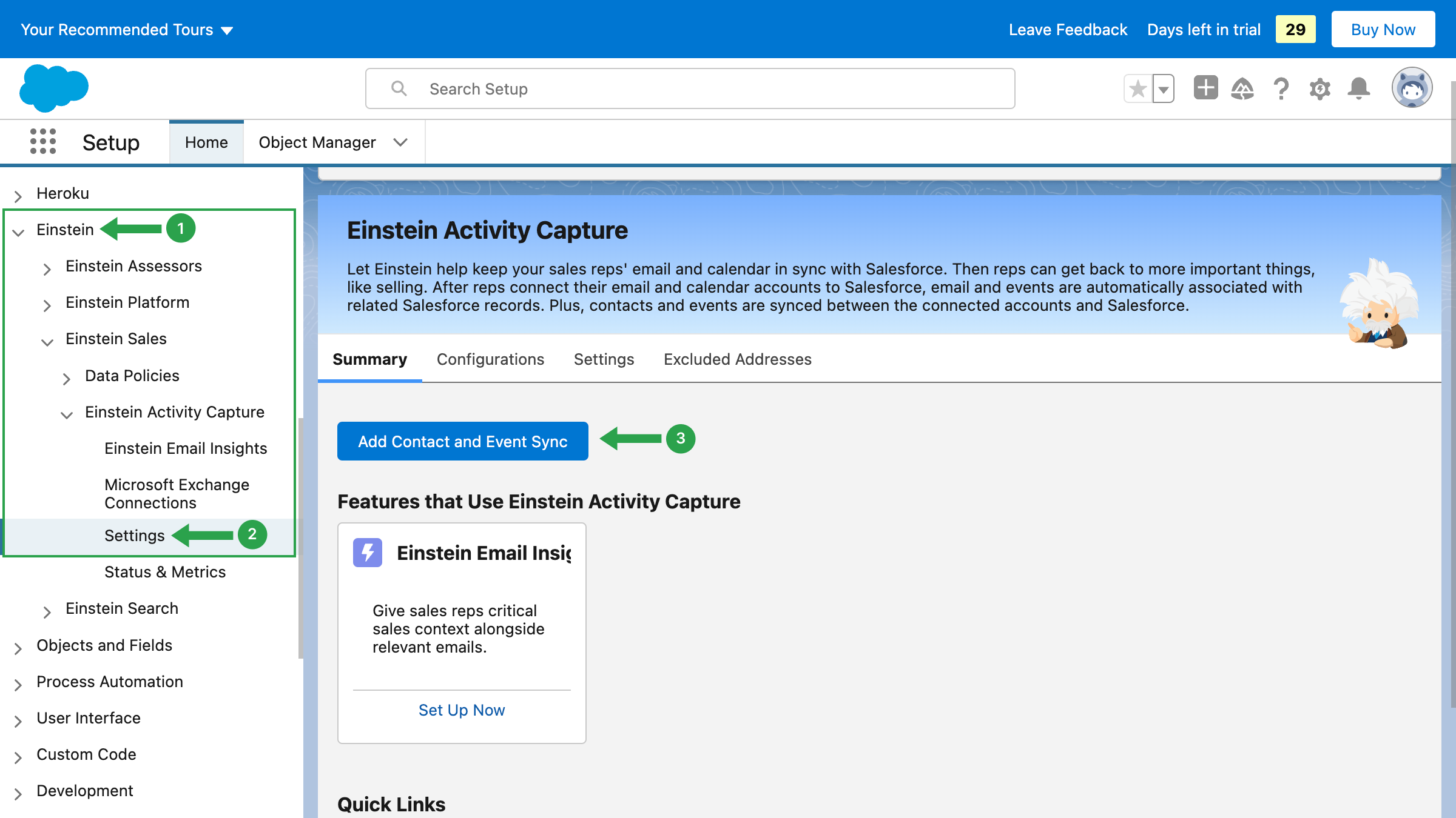 Um Ihr Google-Konto mit Salesforce zu verbinden, müssen Sie das Einstein Activity Capture (EAC) Werkzeug. Es ermöglicht Salesforce-Benutzern, ihre Google-Konten mit Salesforce zu synchronisieren, was die Synchronisierung von E-Mails, Kalenderereignissen und Kontakten zwischen den beiden Plattformen ermöglicht.