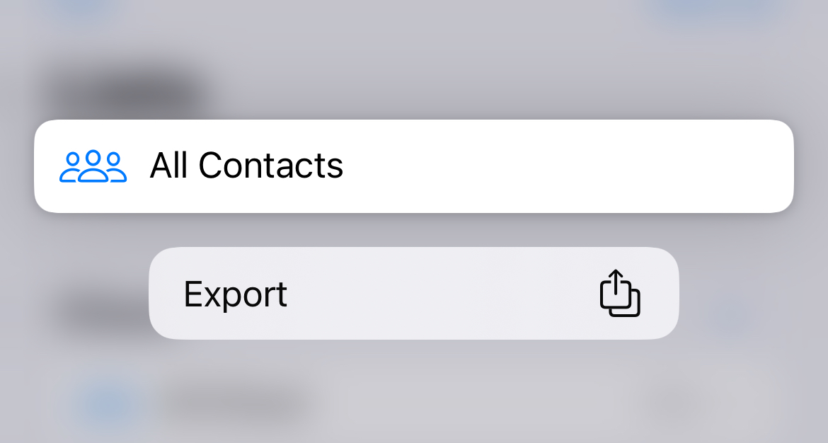 - Mantenga pulsado Todos los contactos (o la lista específica que haya seleccionado), elija Exportar de las opciones.