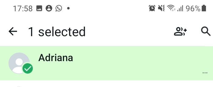 - Aparecerá una lista de chats de WhatsApp. Seleccione el destinatario o el grupo con el que desea compartir el contacto.