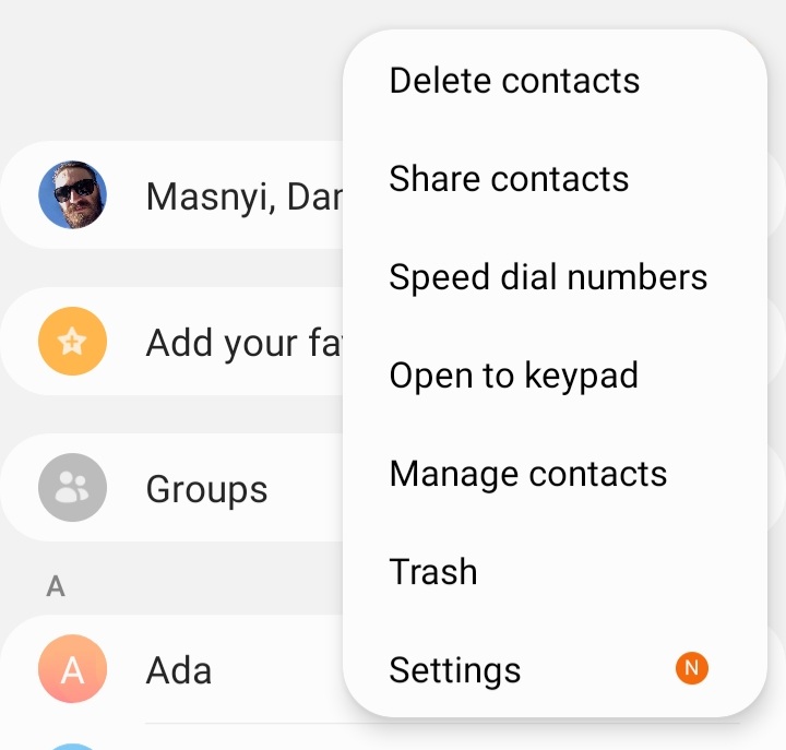 - Abre la aplicación Contactos en tu dispositivo Android. Pulsa el icono de menú (normalmente tres puntos) en la esquina superior derecha y seleccione Gestionar contactos.