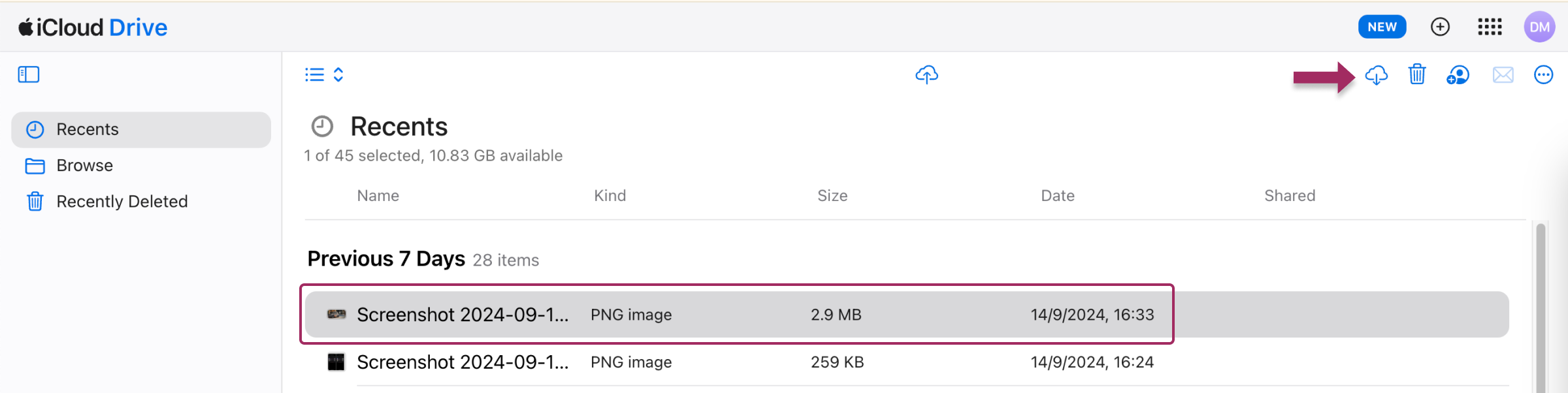 - 开放 iCloud Drive 并选择要传输的文件。