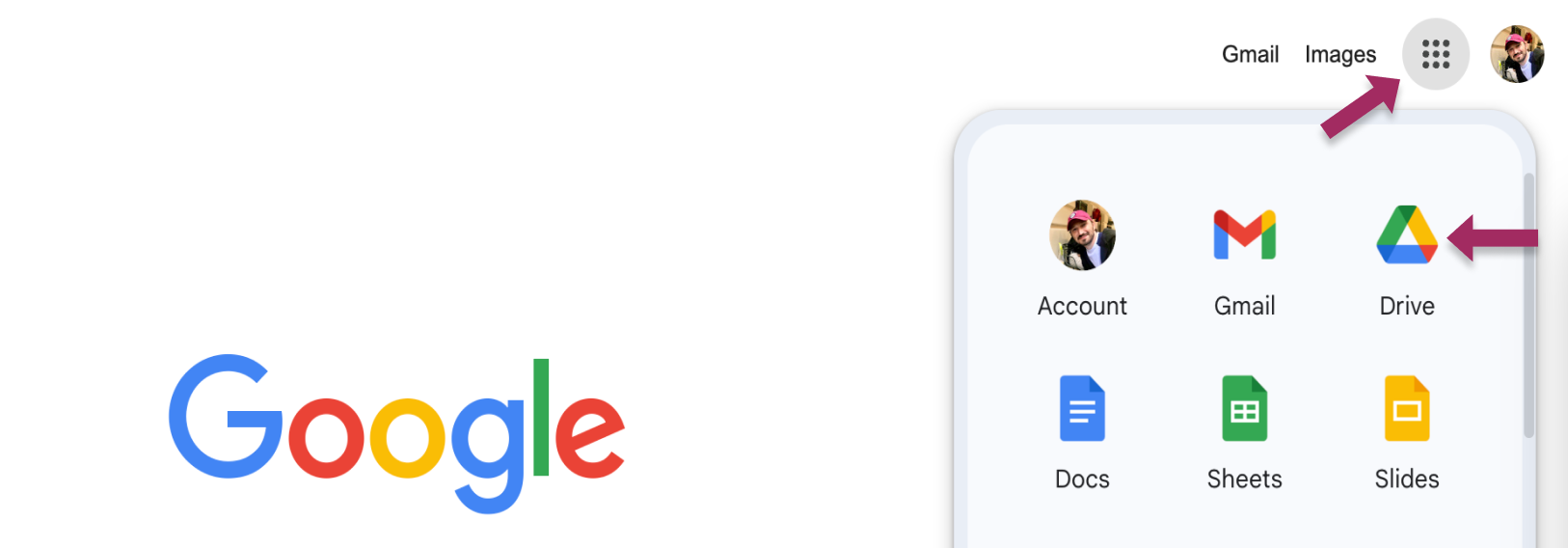 - 选择 谷歌 驾驶 图标。